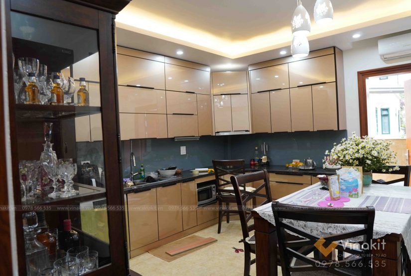 Ảnh thực tế cận cảnh Tủ Bếp Inox Cánh Kính của Vinakit – Chuyên Gia Tủ Bếp thi công tại nhà cô Luyến – phố Nguyễn Sơn – TP. Hà Nội.