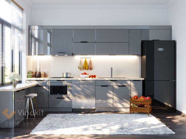 Kiểu dáng: Chữ I trên, L dưới, có quầy bar