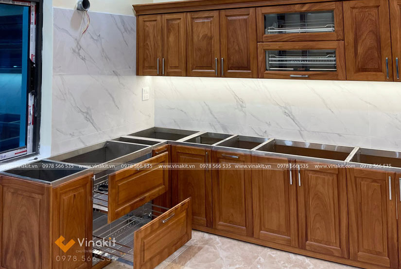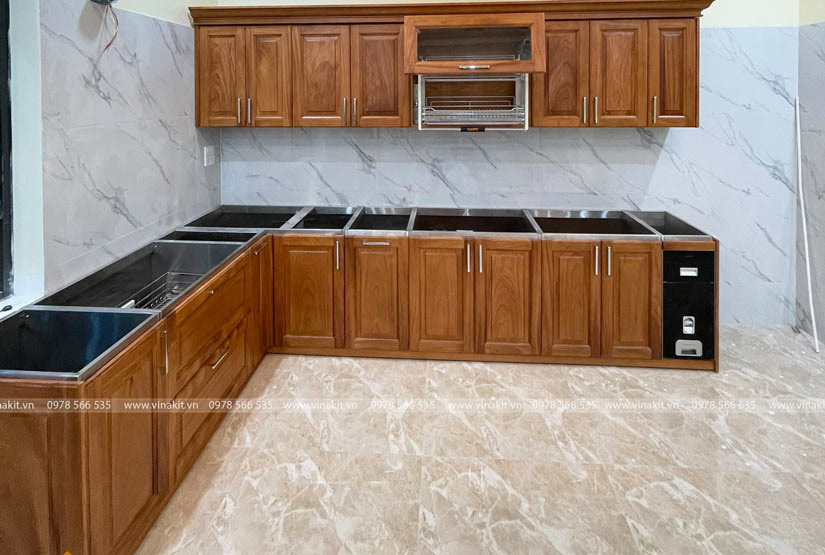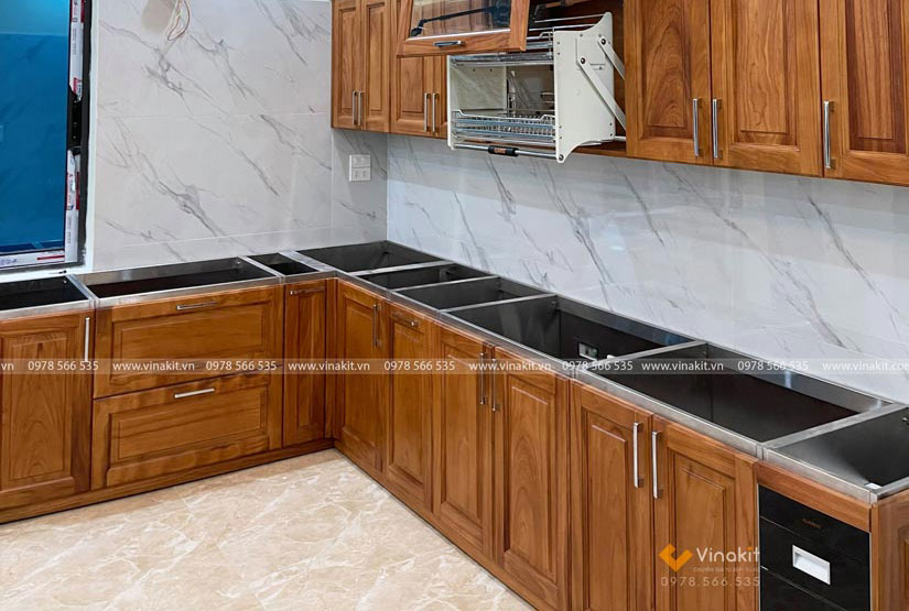 Tủ Bếp Inox Cánh Gỗ Hương – Anh Hải – Hà Nam