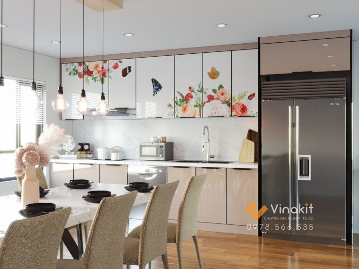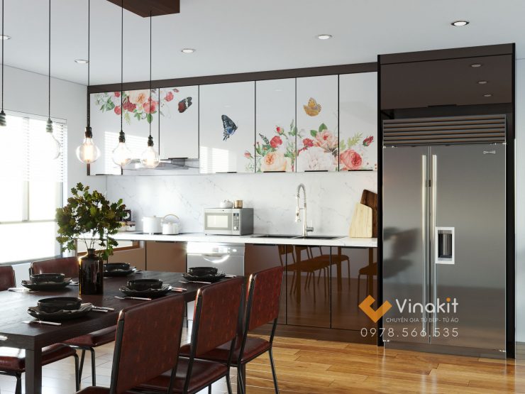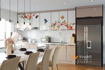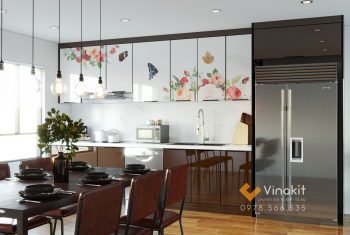 Chất liệu: Tủ bếp inox cánh kính cường lực