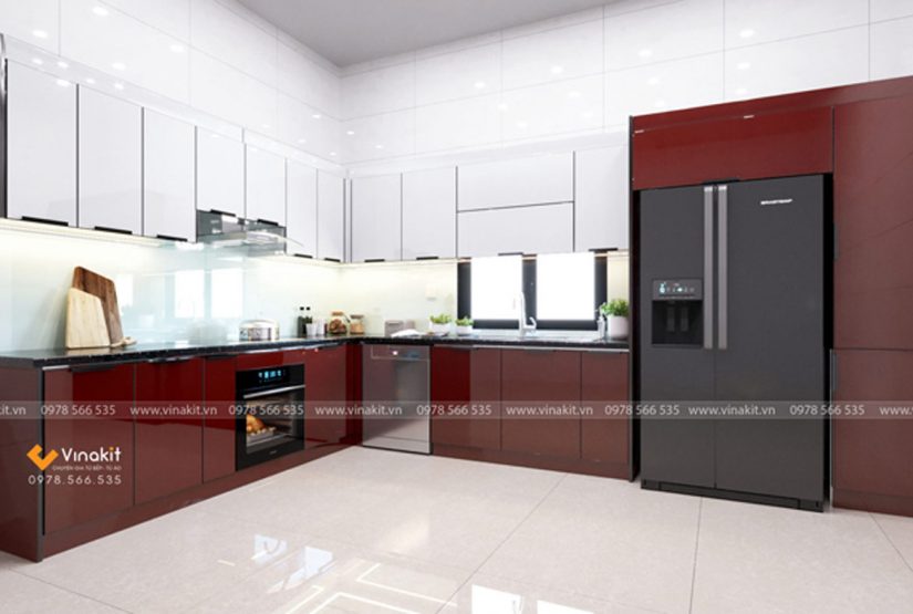 Chất liệu: Tủ bếp inox cánh kính cường lực