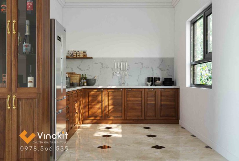 Chất liệu: Tủ Bếp Inox Cánh Gỗ Óc Chó