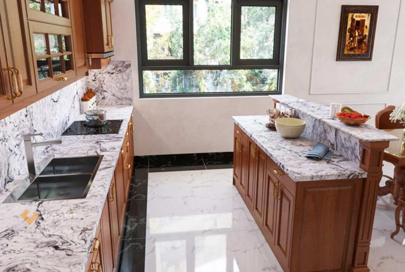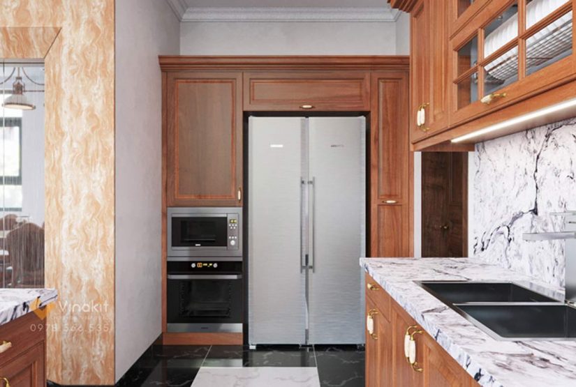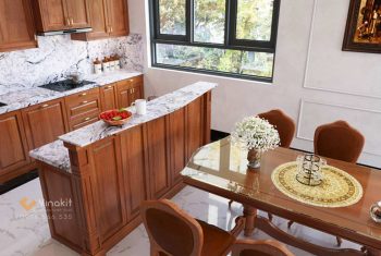 Chất liệu: Tủ bếp khung inox cánh gỗ Hương