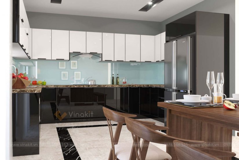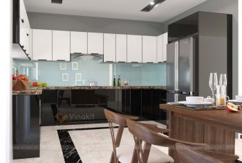 Chất liệu: Tủ bếp inox cánh kính cường lực