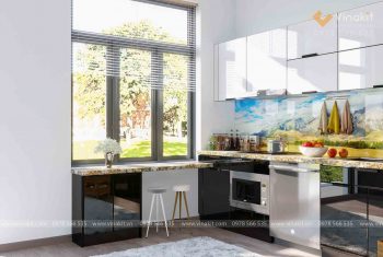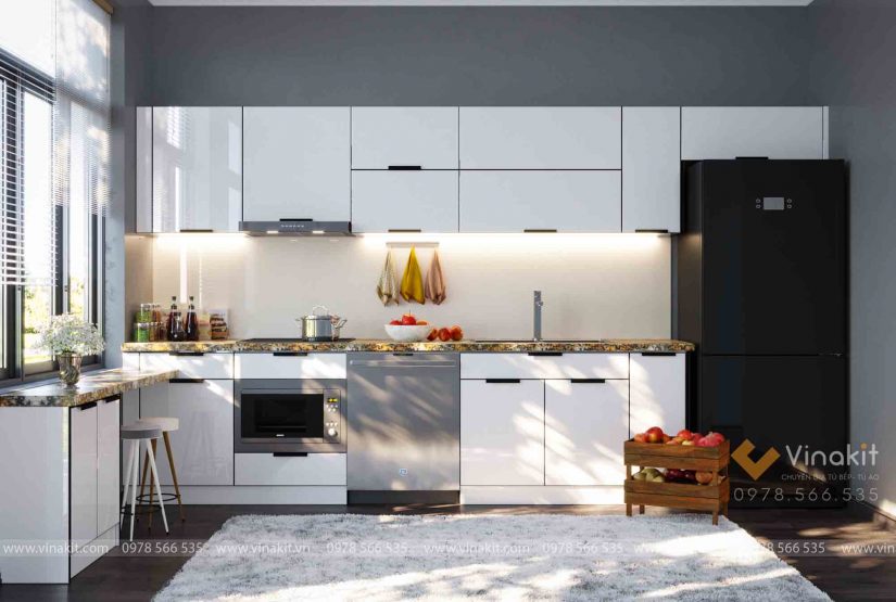 Kiểu dáng: Chữ I trên, L dưới, có quầy bar