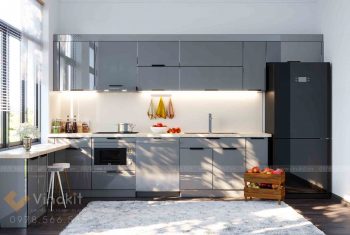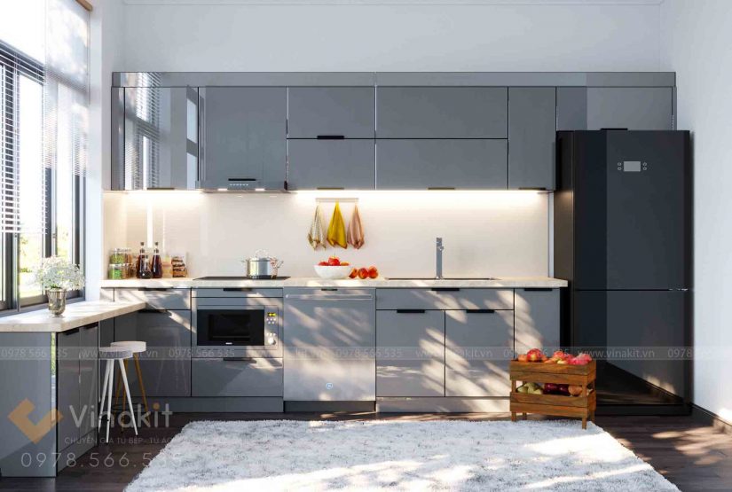 Chất liệu: Tủ bếp inox cánh kính cường lực
