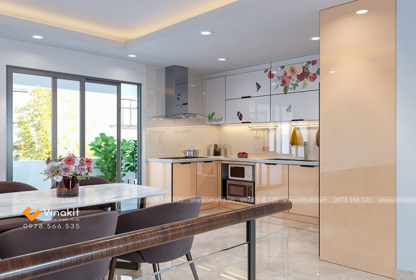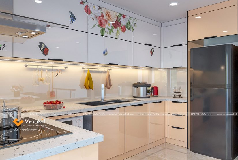 Chất liệu: Tủ bếp inox cánh kính cường lực
