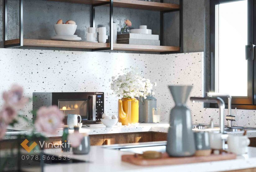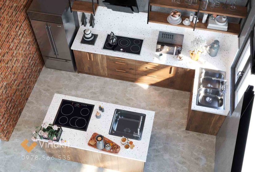 Kiểu dáng: Chữ L, có bàn đảo, không tủ trên